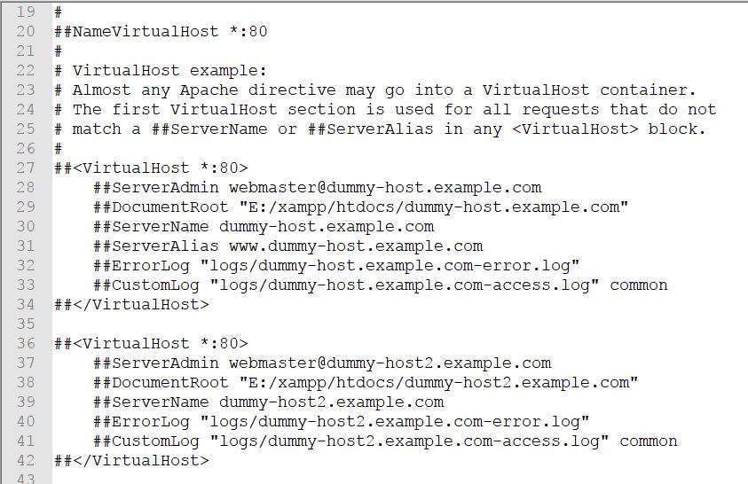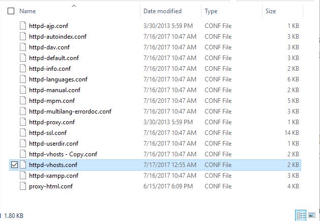- Open httpd-vhosts.conf file using your favorite text editor. (Be sure to make a backup of the file in case something went wrong)