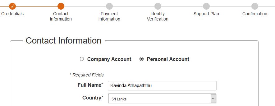 Fill the contact information and check the checkbox if your agree to terms and conditions; click Create Account and Continue